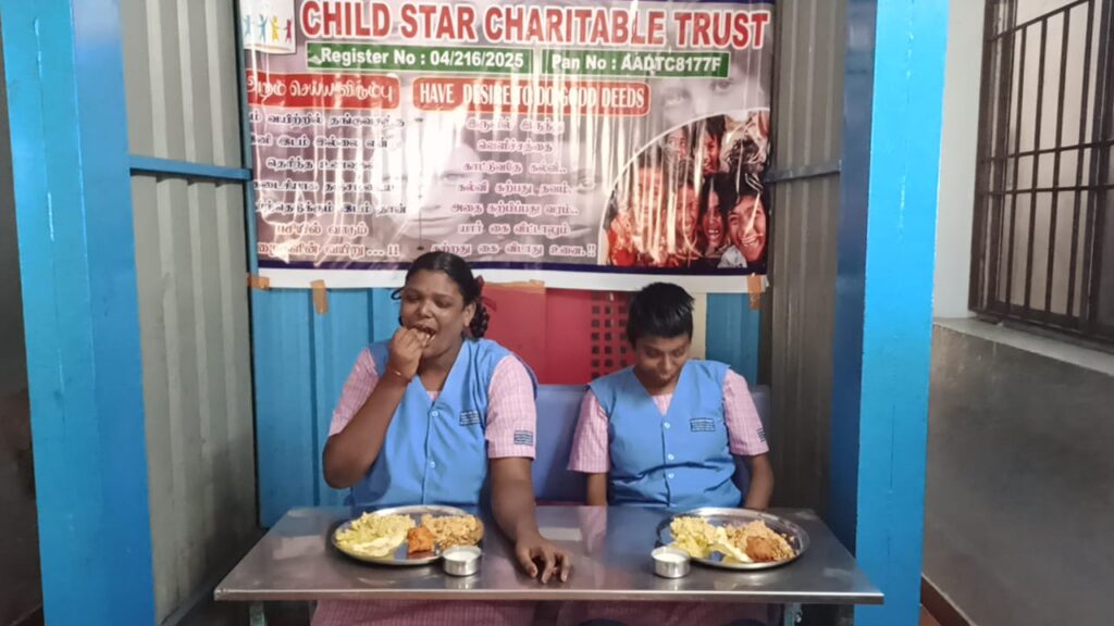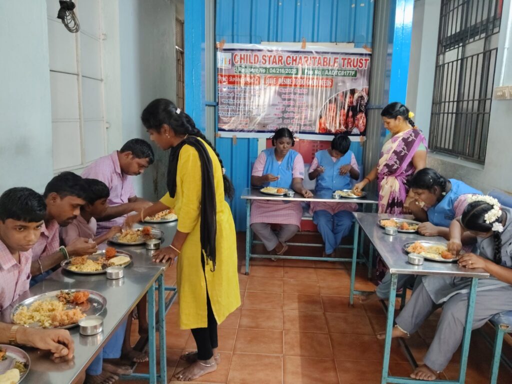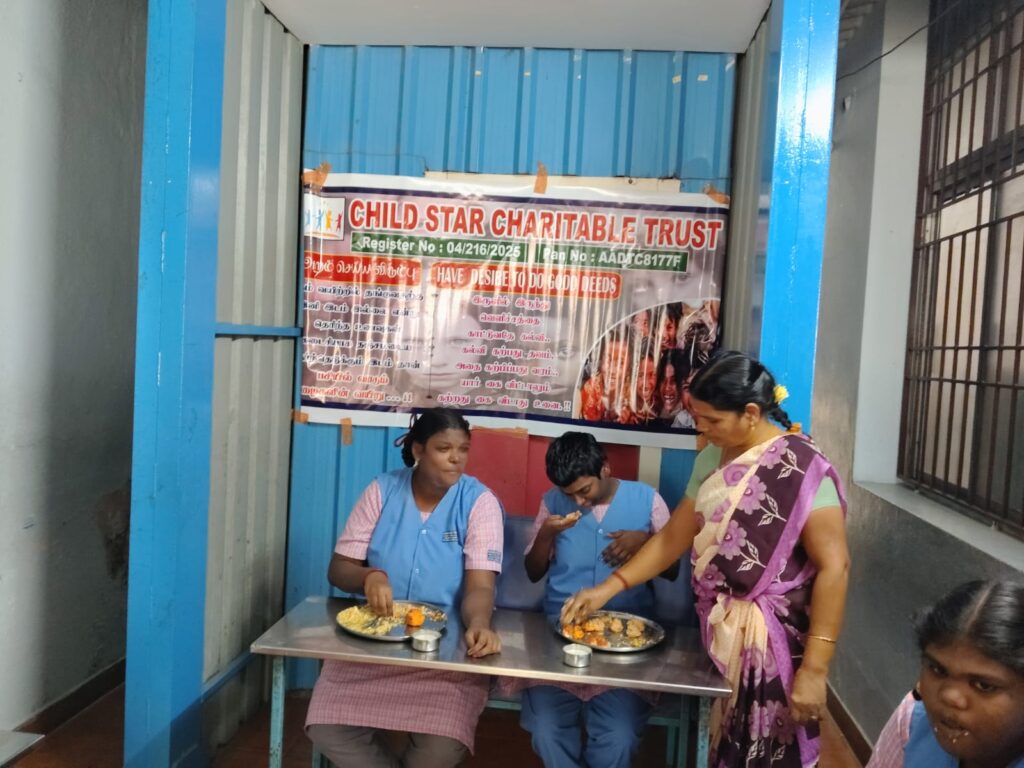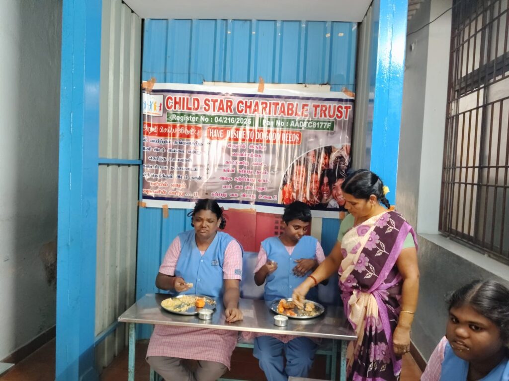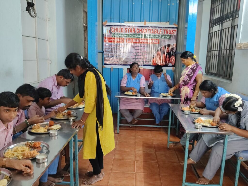 Child Star Charitable Trust organized a heartfelt food distribution program at Karunai Illam in Saidapet, Chennai, on December 26, 2025.